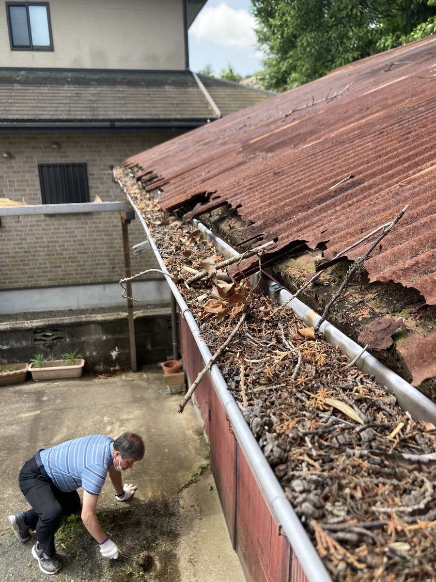 2024.06.06 雨どい清掃 2025年7月31日 最終更新日時 : 2025年8月28日 seri 雨どいの清掃を行ないました。 梅雨を前にご依頼が多くなる雨どい清掃。 雨どいが詰まると、流れなかった雨が天井にシミをつくったり雨漏りしたり・・・ でも、場所が高いところになるため作業が難しかったりしますよね。 今回も、枯葉等を取り除いてきれいに清掃しました! ご依頼者様からは『梅雨の前に作業してもらえたので、雨漏りの心配もなくなって安心しました!』 とうれしいお言葉をいただきました。 今後もご依頼者様にご満足いただけるよう、丁寧に作業を行ないたいと思います! Facebook